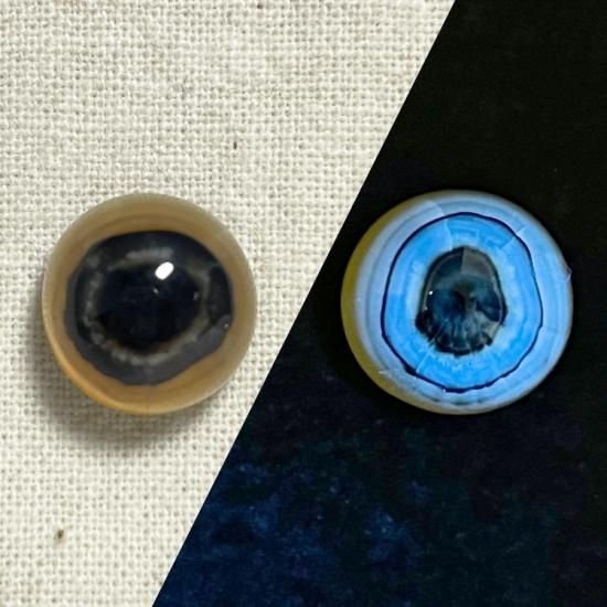 ブラックライトで蛍光して、別の表情の目玉が出現します。