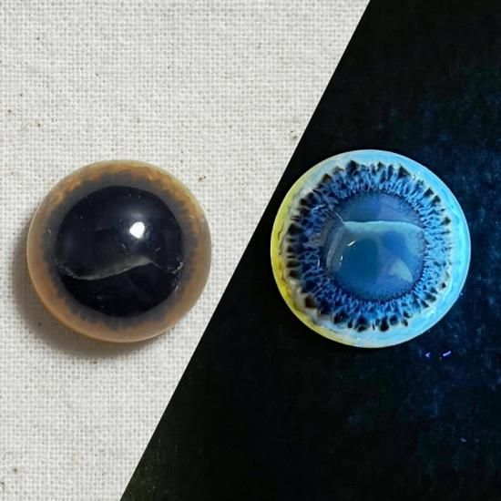 ブラックライトで蛍光して、別の表情の目玉が出現します。