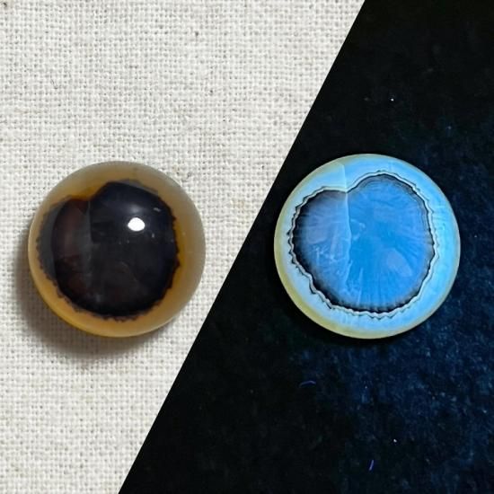 ブラックライトで蛍光して、別の表情の目玉が出現します。
