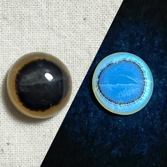 ブラックライトで蛍光して、別の表情の目玉が出現します。