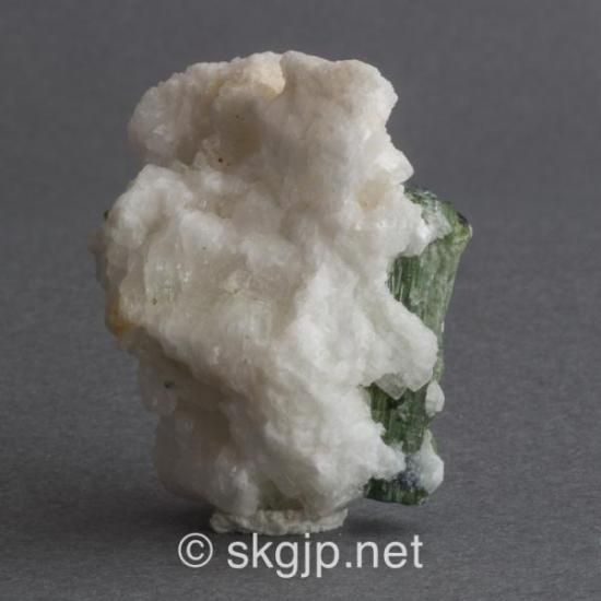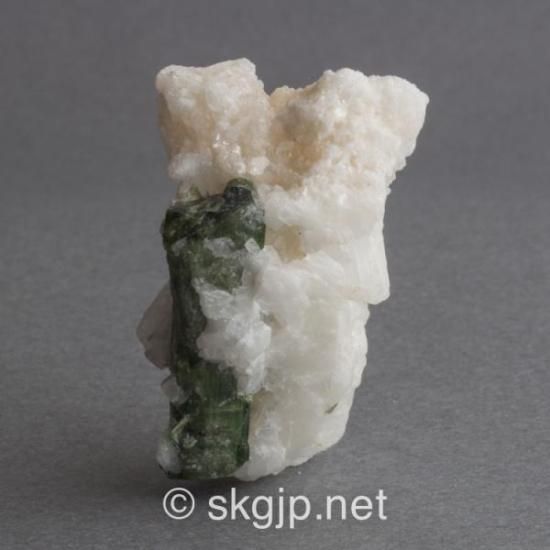 クマかネコか。白い動物がトルマリンに抱きついているようです。
